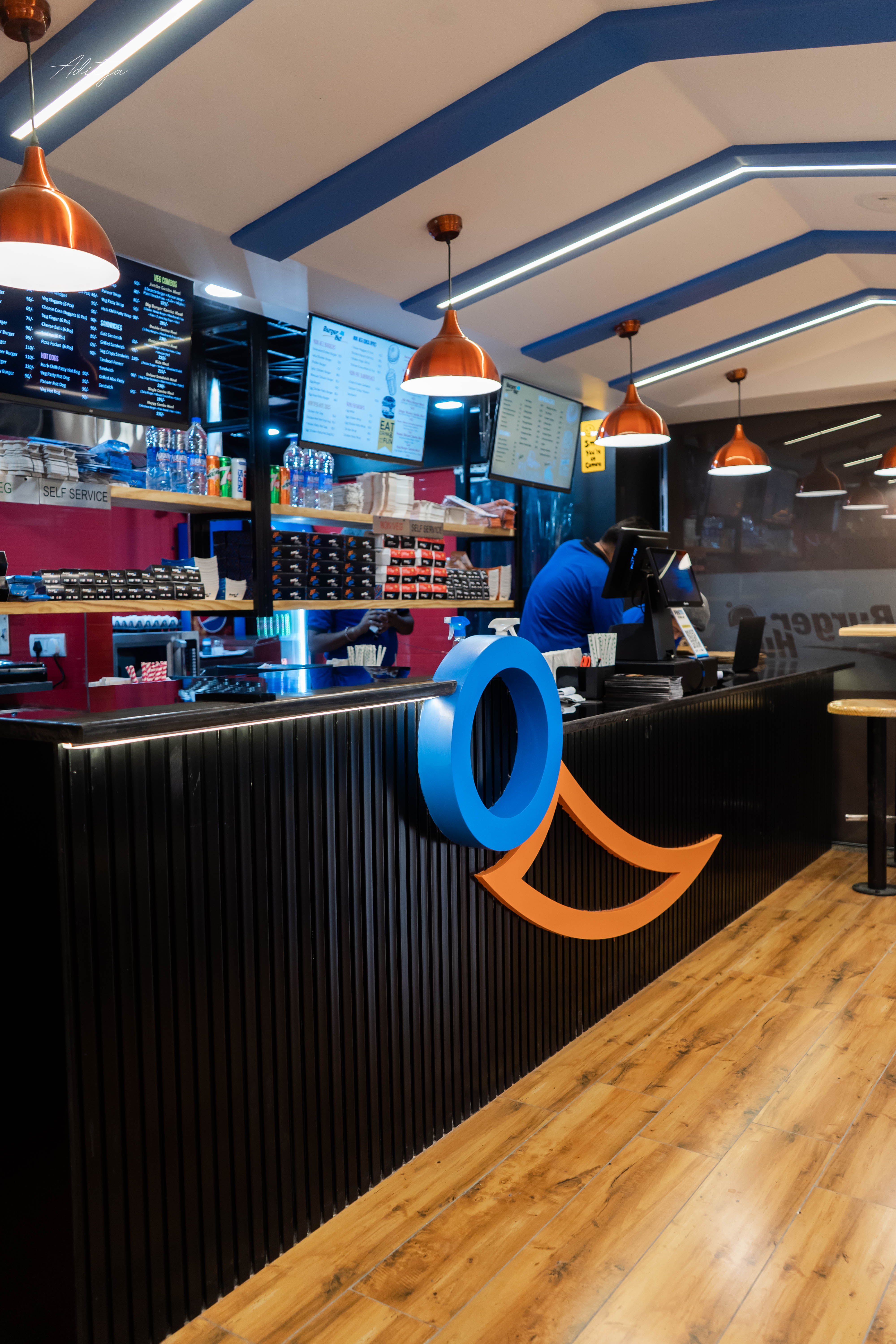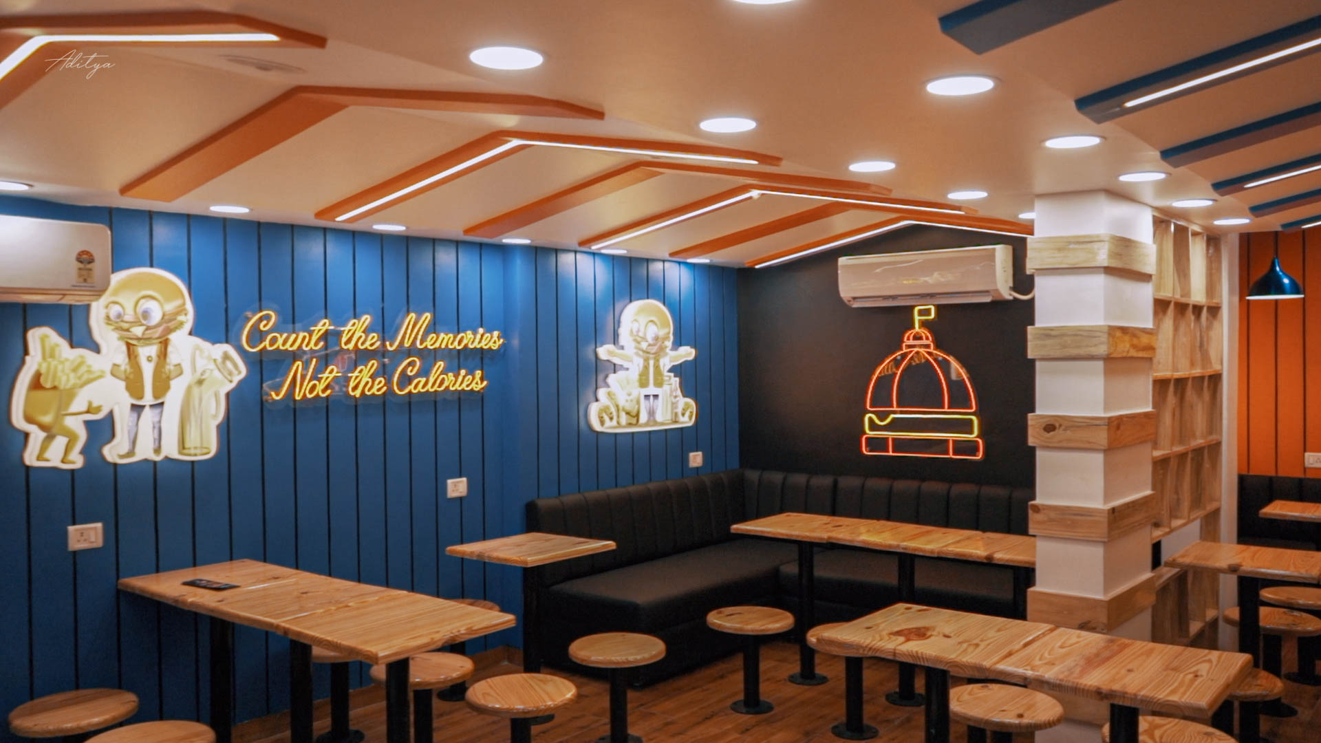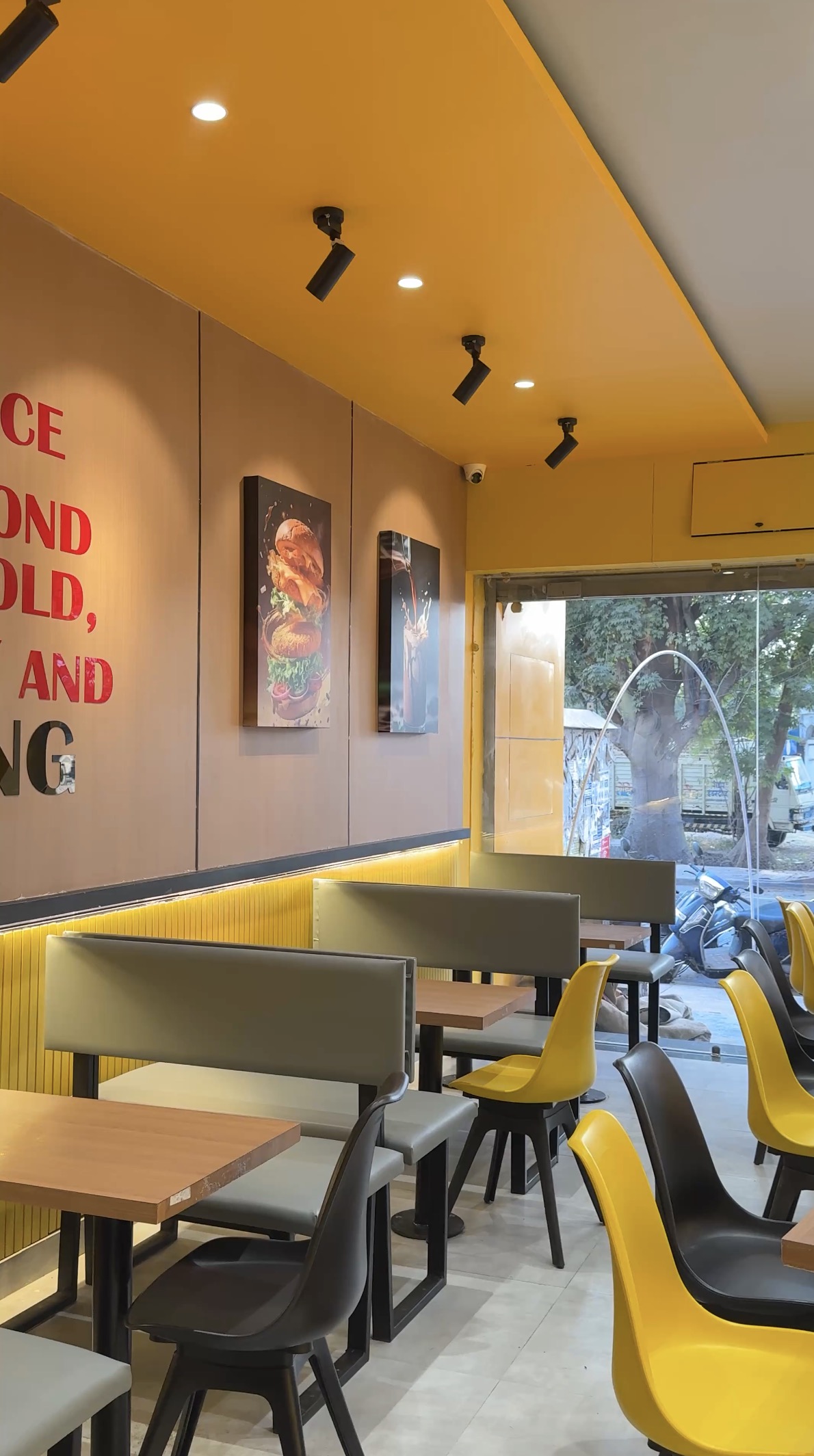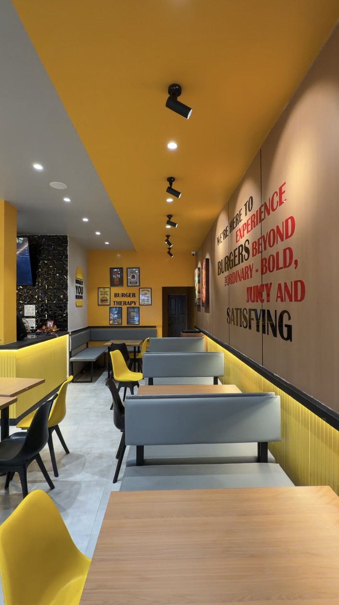 This restaurant project is designed with a vibrant and contemporary theme, creating an energetic and inviting dining environment. Bold colors, creative lighting, and modern materials enhance the visual appeal while reflecting a youthful vibe. The layout is planned for efficiency and comfort, ensuring smooth customer flow and functionality. Every element is thoughtfully curated to deliver a lively atmosphere that complements a fast-paced, enjoyable dining experience.