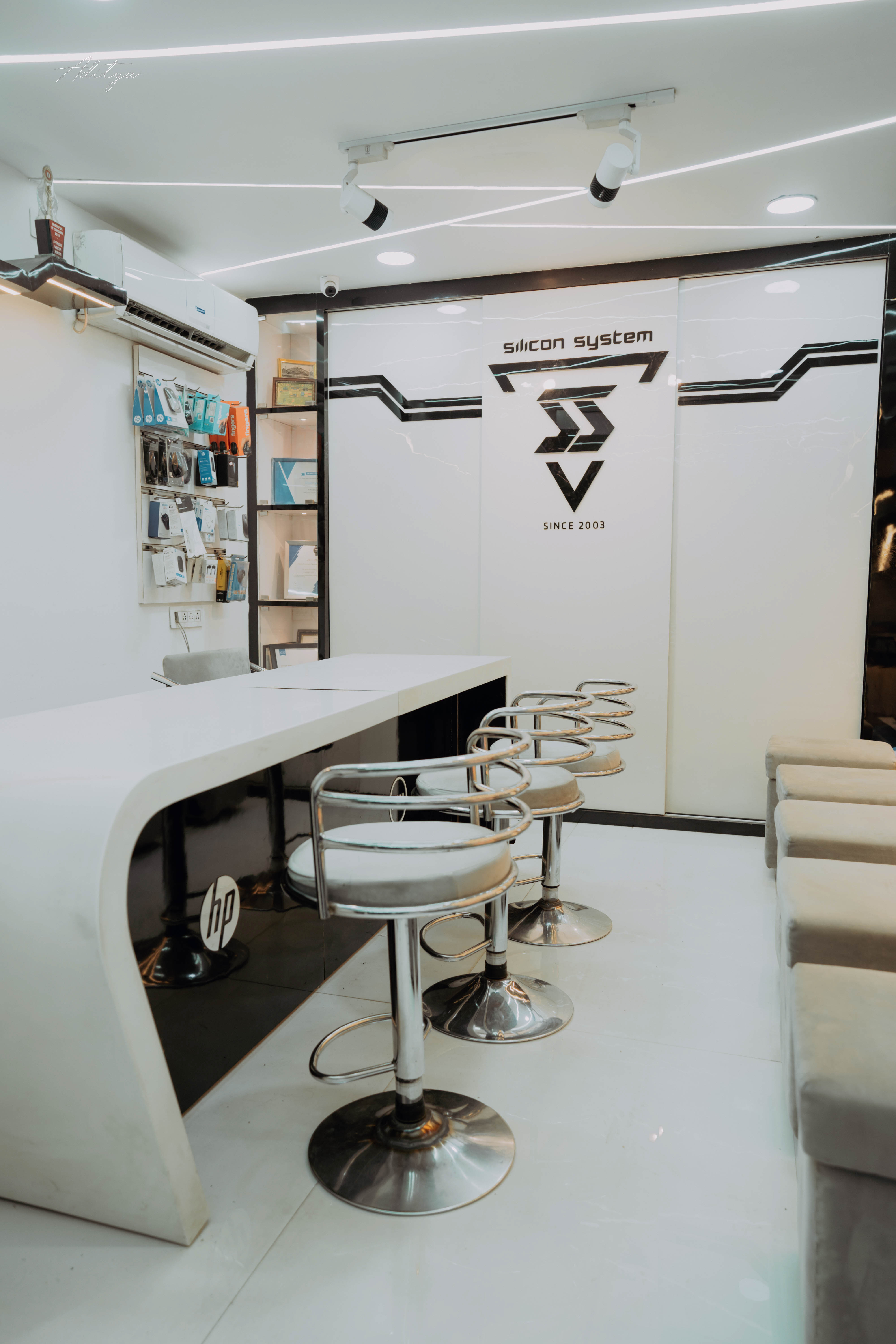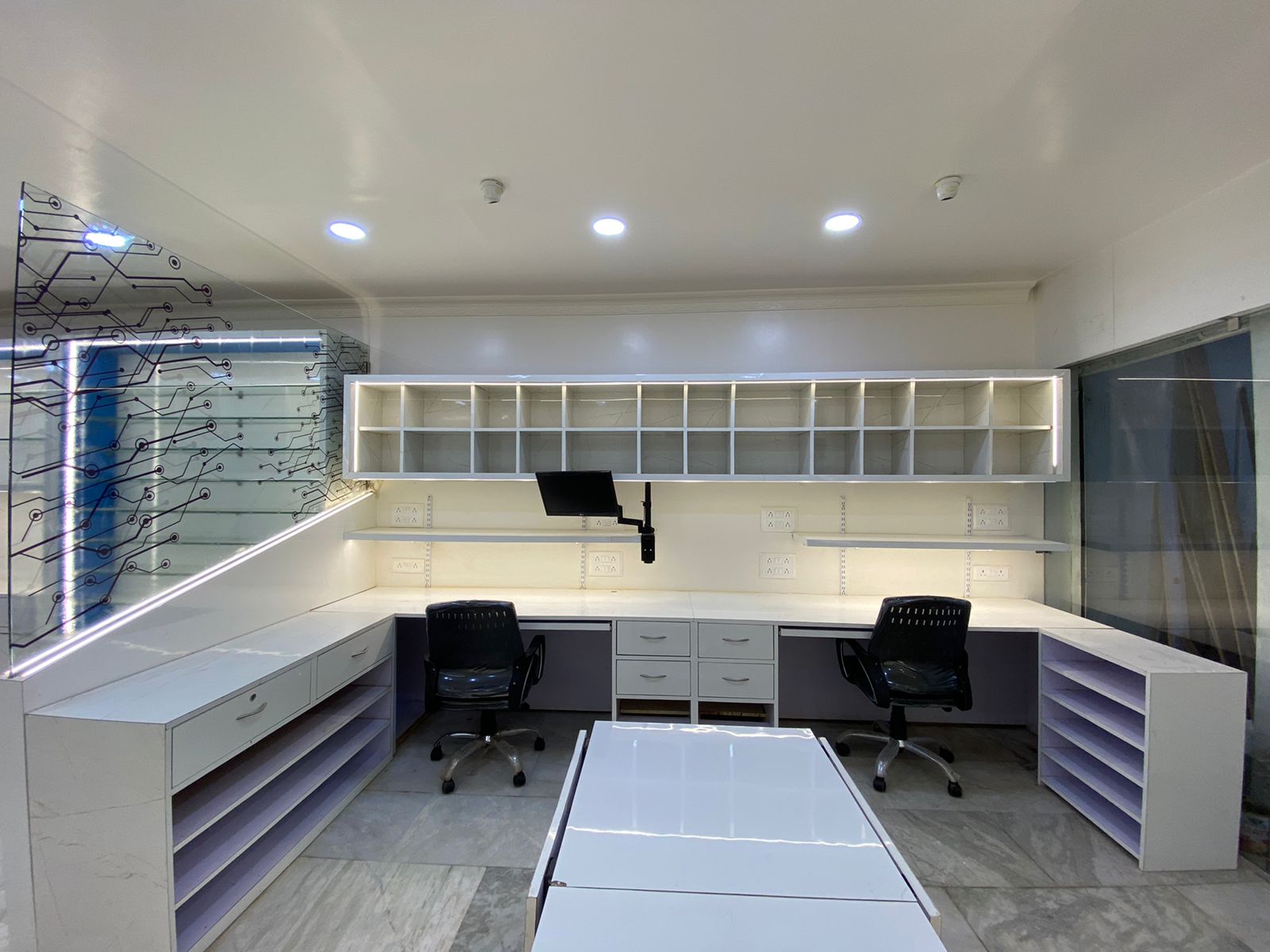 This commercial workspace is designed with a sleek and modern approach, focusing on productivity and functionality. Clean lines, minimal aesthetics, and a well-planned layout create an efficient working environment. Thoughtful lighting and balanced design elements enhance comfort and professionalism, resulting in a space that supports daily operations while reflecting a contemporary and refined business identity.