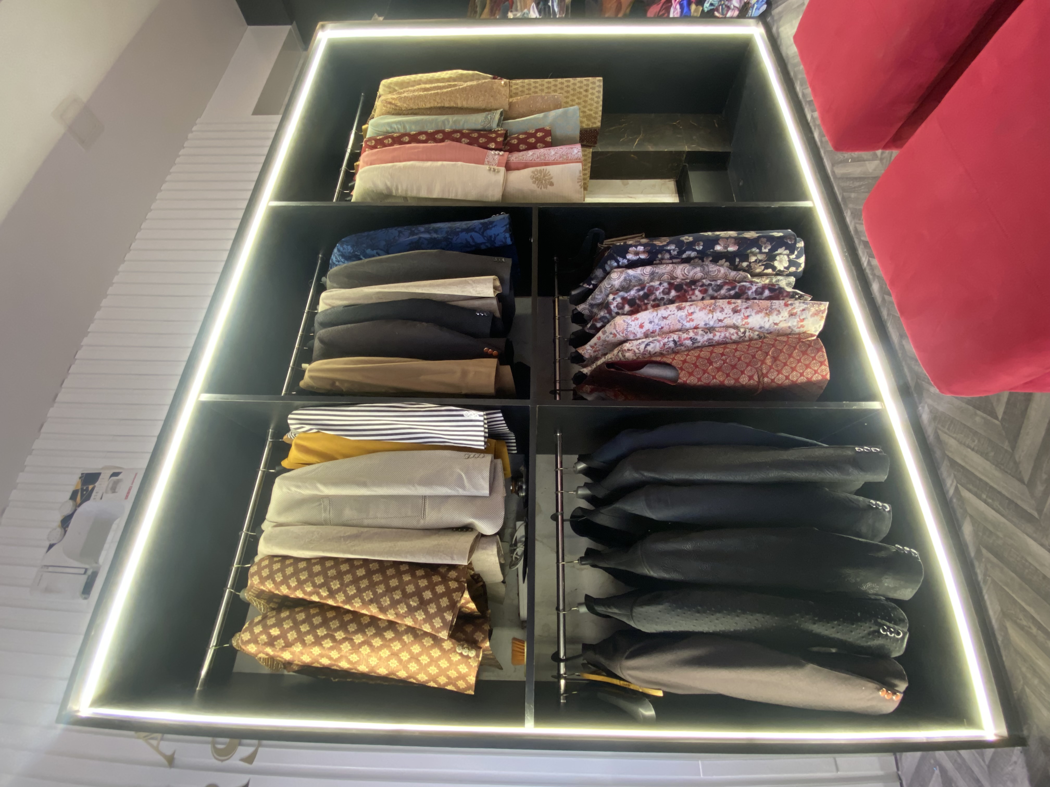 This commercial retail space is designed to create an elegant and engaging shopping experience. A refined color palette, thoughtful lighting, and well-organized displays highlight the products while enhancing visual appeal. The layout ensures smooth customer movement and functionality, creating a welcoming environment that balances aesthetics with practicality and reflects a strong, contemporary brand identity.